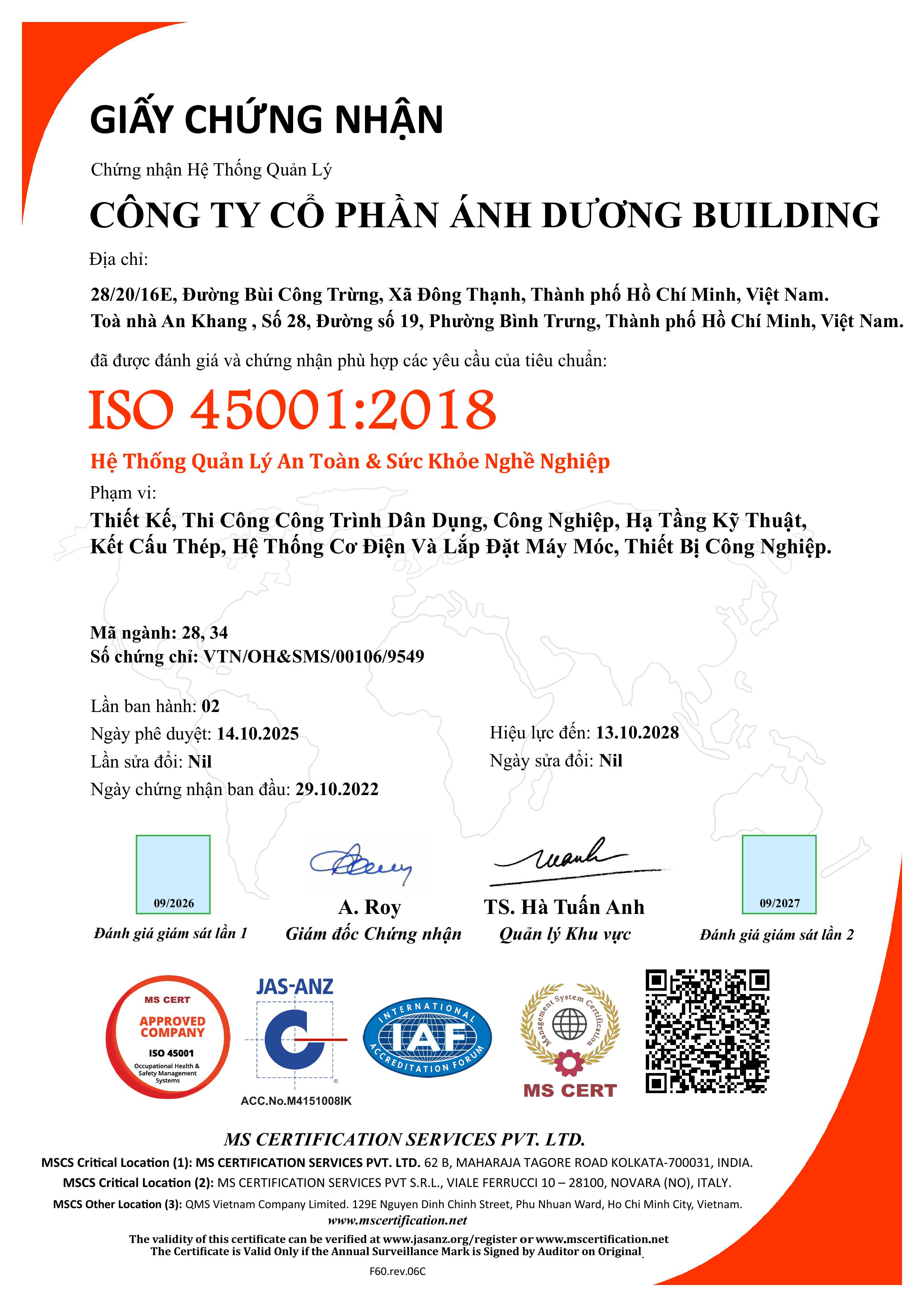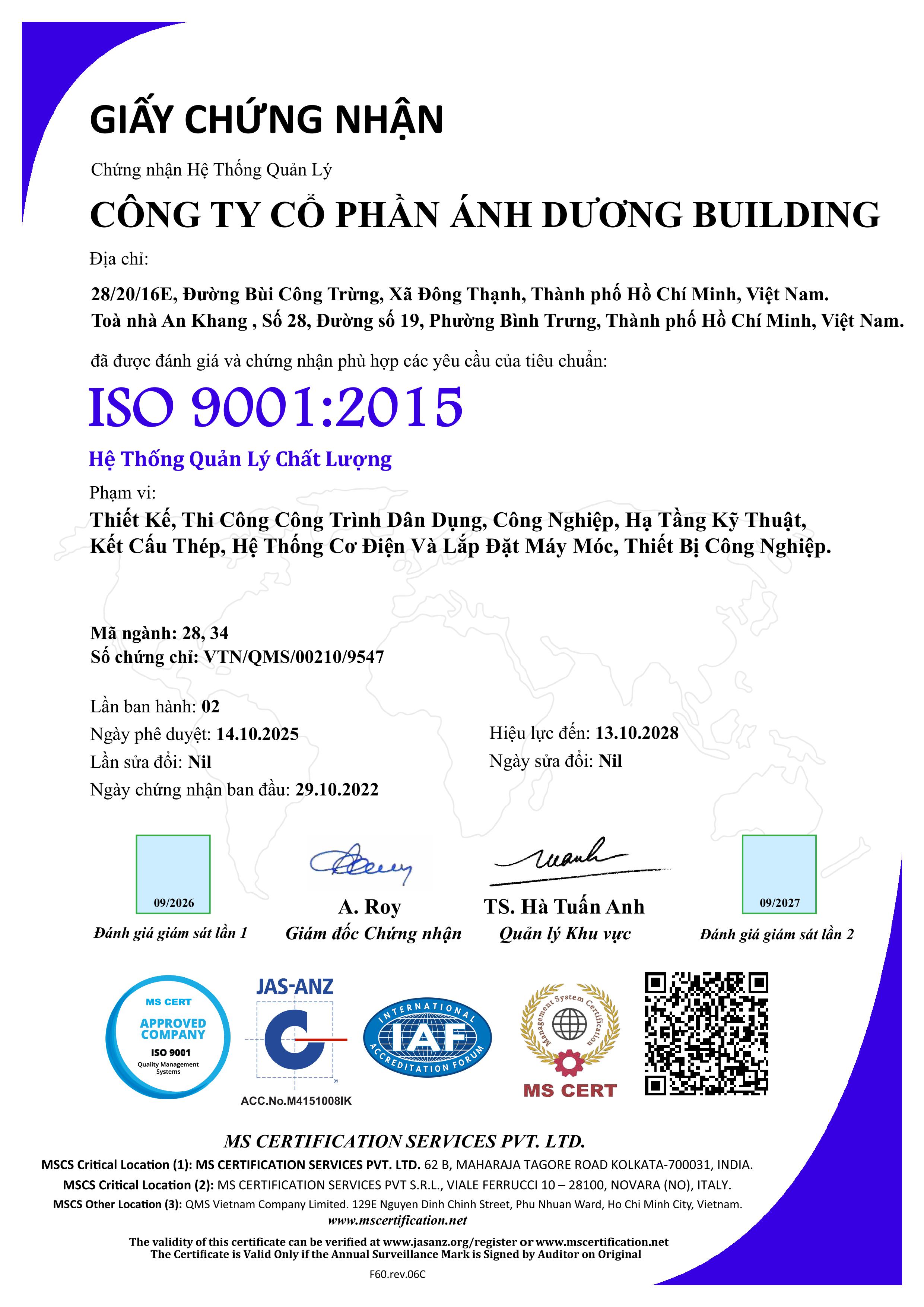 ADB 股份公司自豪地拥有由建设部南方工作局颁发的建筑活动能力一级资质证书。该资质是建筑行业中最高等级的法定认证,充分彰显了公司雄厚的财务实力、高素质的专业人才队伍以及在建筑领域长期积累的丰富经验。