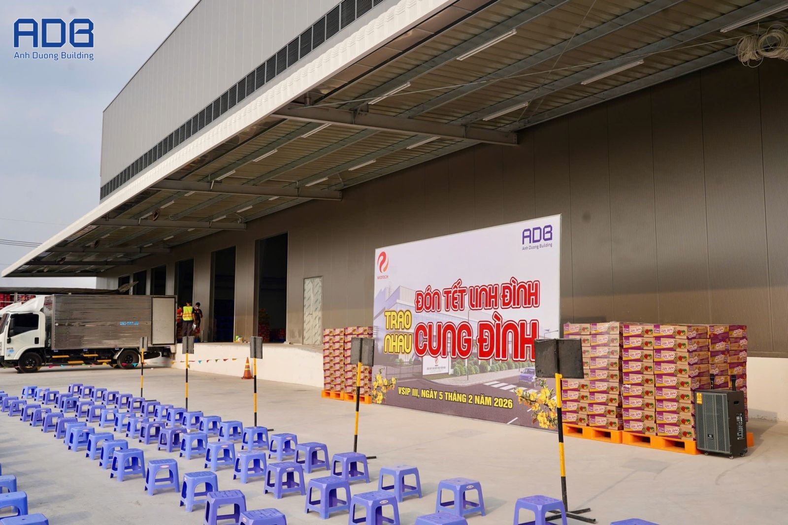 On February 5, 2026, at VSIP III Industrial Park, the program “Welcoming a Prosperous Tet – Sharing a Meaningful Spring” was held in a warm and heartfelt atmosphere, with the companionship of the Investor AFOTECH and Anh Duong Building Joint Stock Company (ADB). More than a Tet welfare activity for workers, the program became an emotional touchpoint, spreading humane values right at the construction site as the Lunar New Year approached.